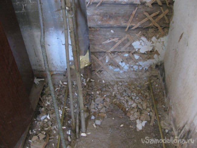 Так вот, полы я потихоньку срываю и заливаю бетонные. Утепления никакого не делаю, логика такая – если с деревянным особо холодно не было, то и с этим не будет, а плюс ко всему теперь еще и не будет дуть сквозняк. Слой подсыпки там неслабый, так что ничего не промерзает, этой зимой было неделями в районе -25 и все было хорошо, никакого инея или сырых зон.