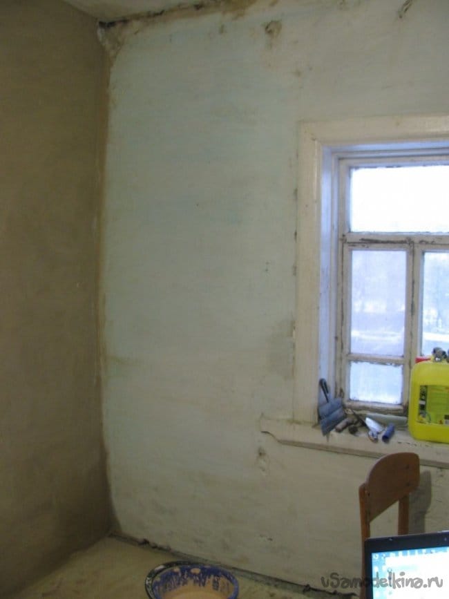В одной из комнат мы снимали побелку, грунтовали стены, шпаклевали и красили. В принципе, все держится крепко и красиво, не считая кривизны.