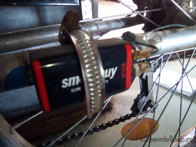 - хомут или иной крепёж для Кроны (стяжки, самодельный металлический хомут или изолента, если крепить батарею в надёжном месте на велосипеде);