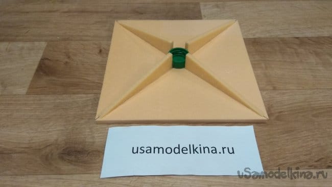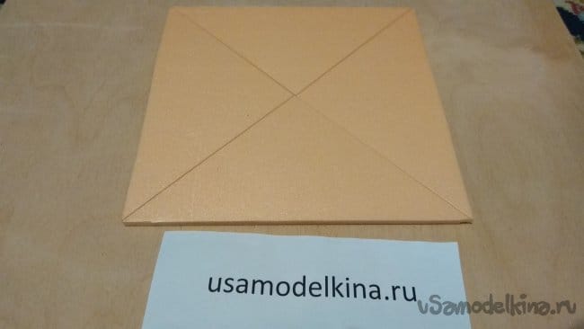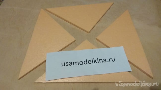Из второго пятимиллиметрового листа будем делать рассеиватель. Разрезаем его по диагоналям.