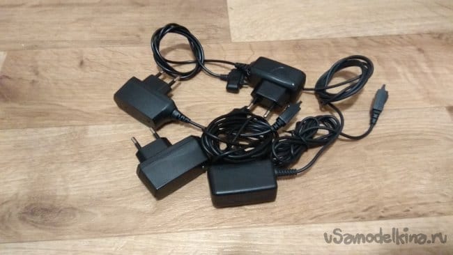 Для питания светильника нам понадобится источник напряжения 5В. Это может быть практически любое пятивольтовое зарядное устройство. На барахолке можно найти абсолютно новые зарядки от старых мобильных телефонов, либо воспользоваться зарядкой с разъемом USB и проводом от старенькой неисправной мышки, вебкамеры, принтера и т.д. Обычно провод у мышки переламывается возле самой мышки и его можно смело использовать в самоделках.