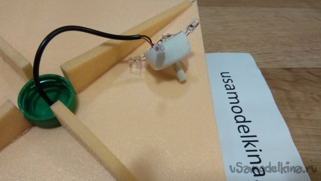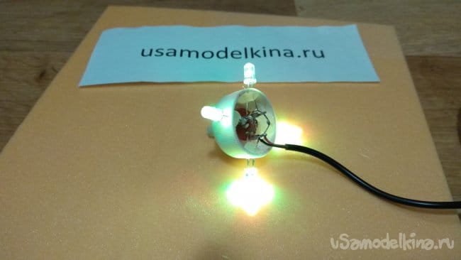 Приклеиваем пробки друг к другу, не забываем закрепить клеем провод. Как видно на фото, светодиоды я отогнул вниз, чтобы свет падал на основание.
