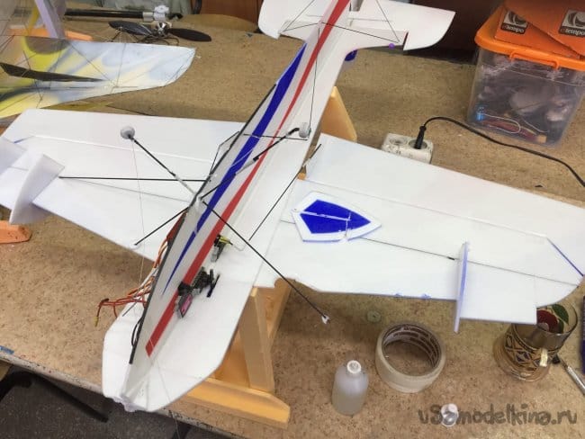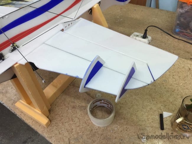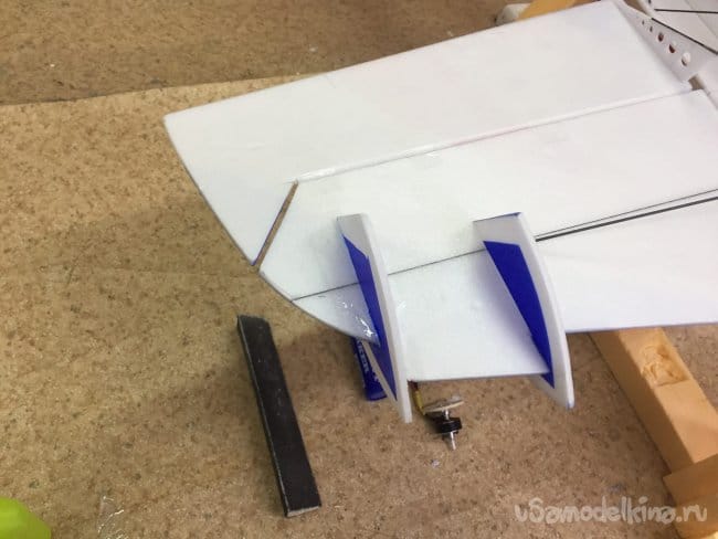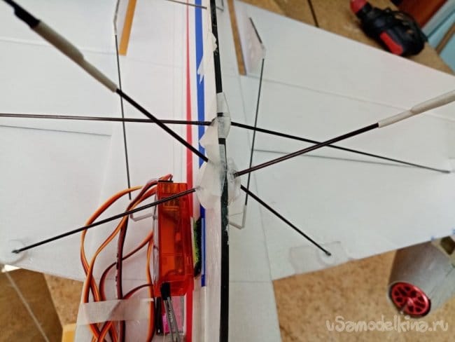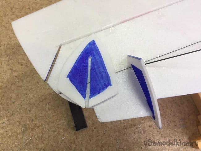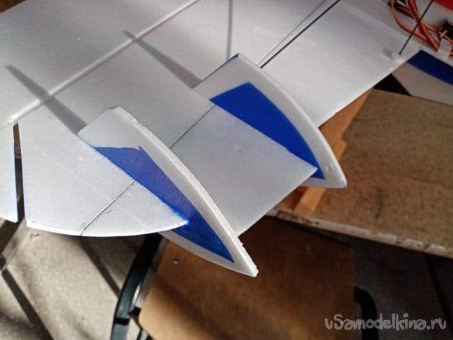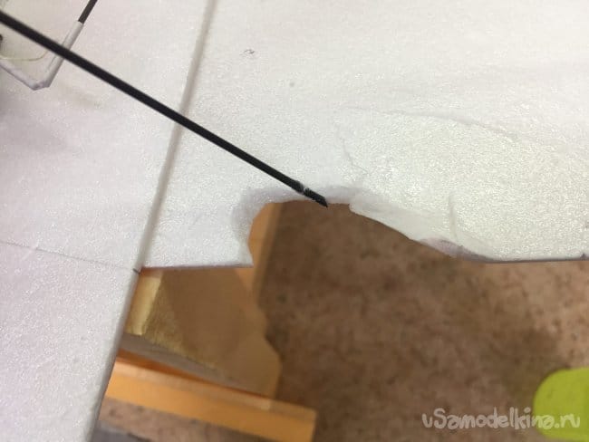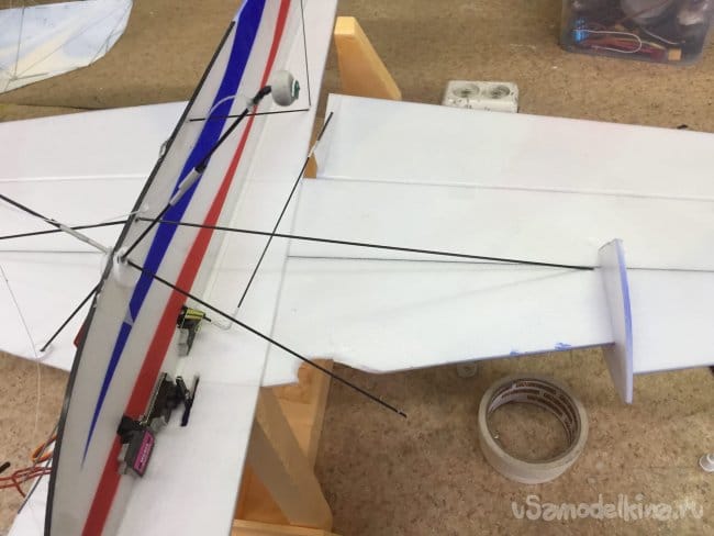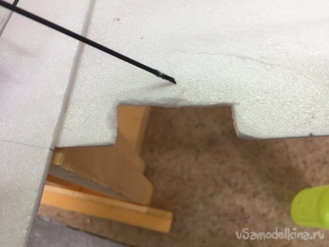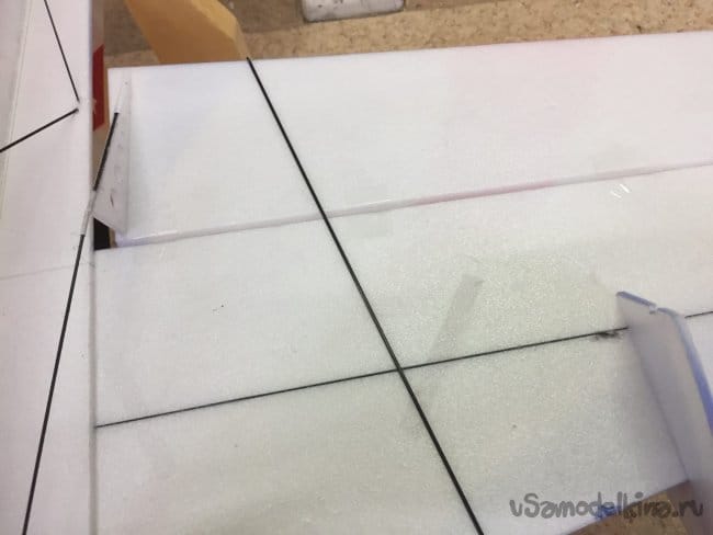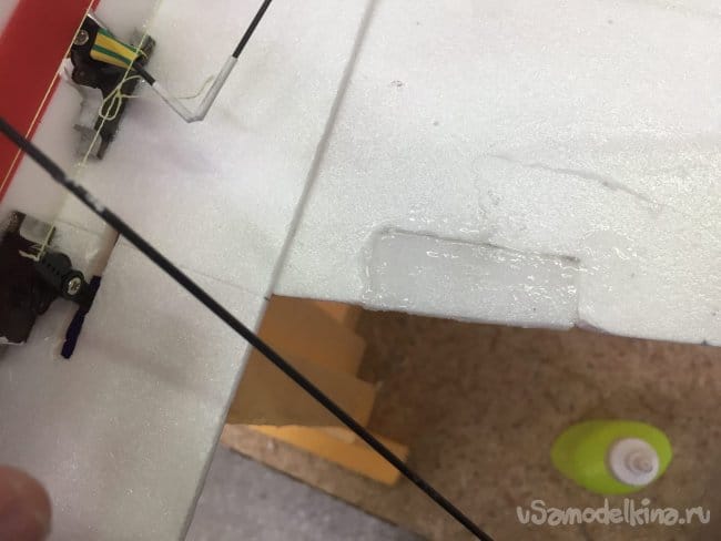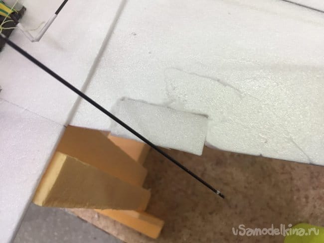 Продолжаем. Я с помощью клея для потолочной плитки приклеиваю карбоновое усиление крыла