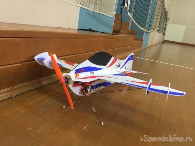 В одном из своих полётов я слишком близко подлетел к стене спортзала и крыло зацепилось за крюк. За этот крюк цепляли волейбольную сетку. Сделав вокруг препятствия петлю, самолёт упал и ударился крылом об стоящий под крюком стул.