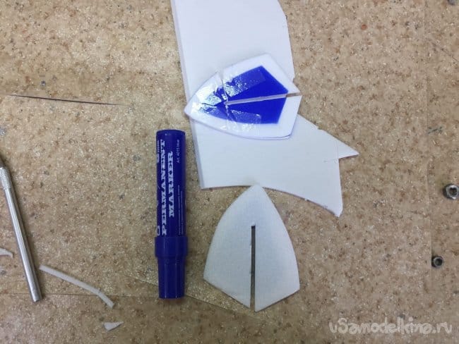 После этого я приклеил этот «треугольник» к крылу на клей «Титан».