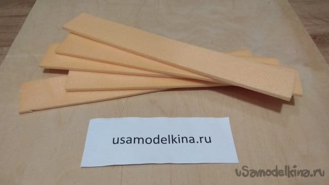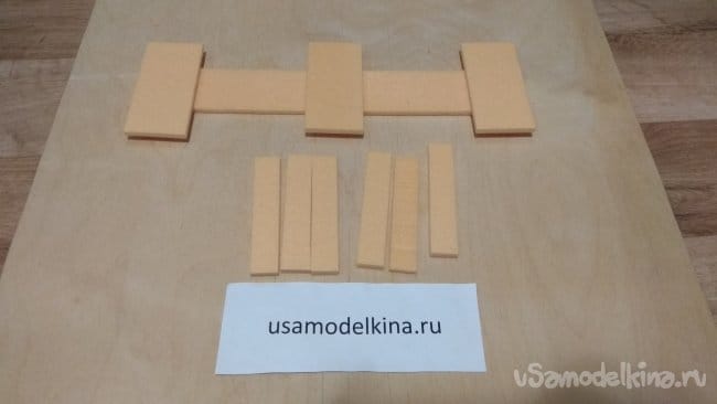 Приклеиваем по бокам основания две боковые пластины. В оставшихся четырех прорезаем пазы под основание.
