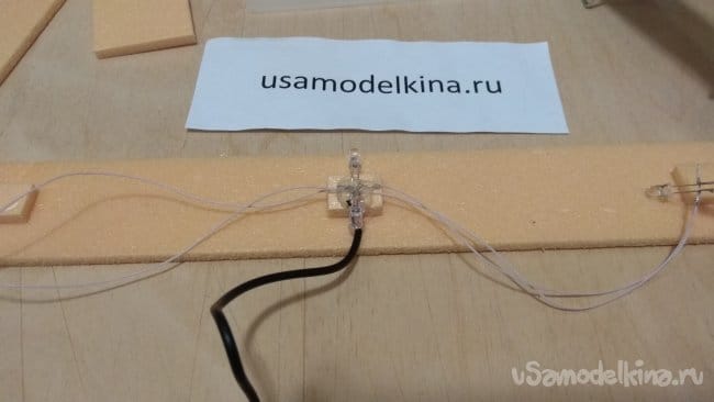 Проводки крепим каплями клея, чтобы не поднимались и не расползались. Потом их скроем, я ниже расскажу как. В итоге получается следующее.