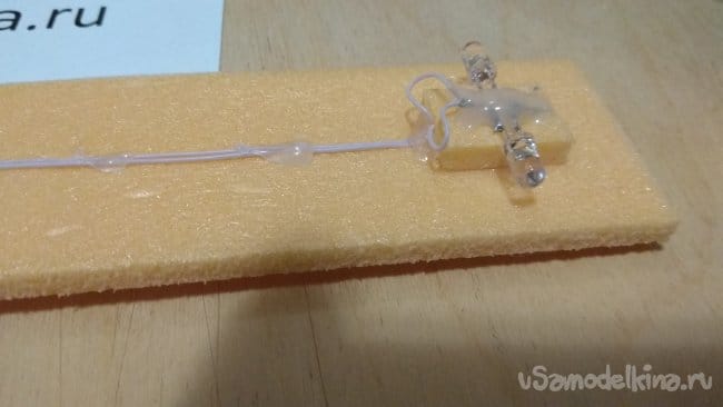 Не забываем приклеить к основанию провод, идущий к зарядному.