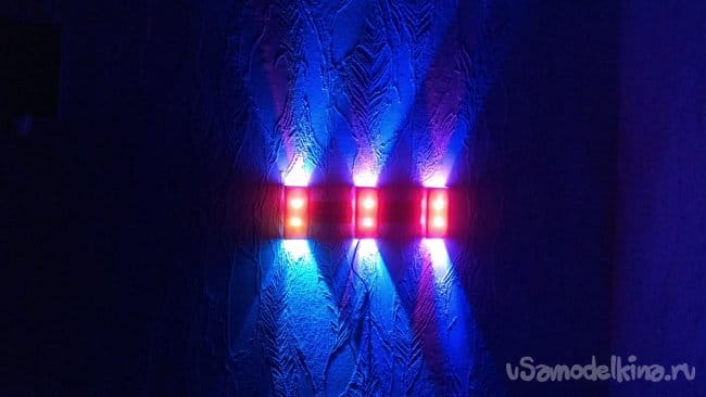 А так светильник выглядит ночью на стене.