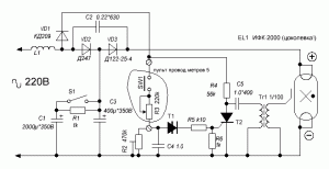Последовательно с резистором R3 можно включить потенциометр «Частота», который позволит плавно уменьшать частоту стробоскопирования, что со временем может понадобиться для разнообразия эффекта стробоскопирования. Увеличивать частоту стробоскопирования ЧРС4 свыше 16 Герц вряд ли целесообразно из-за некоторой инерционности свечения лампы EL1.
