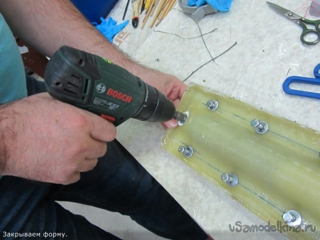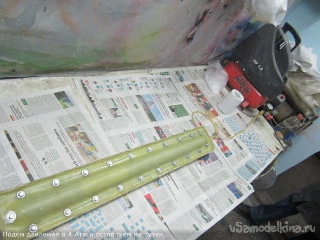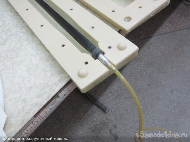 Следующая операция, закручиваем форму окончательно и подключаем к компрессору. Подаем давление и до завтра.