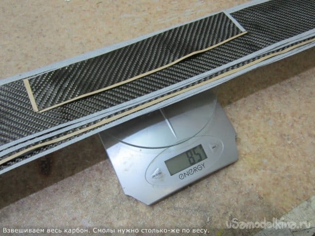 Завешиваем все заготовки карбона. При разведении смолы должно быть такое-же количество по весу.