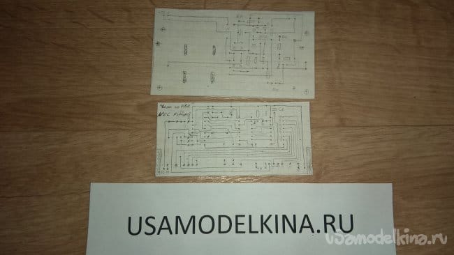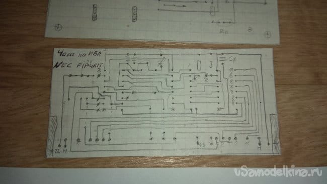 Нарисовал и вытравил плату. Рисовали тогда обычно на миллиметровке, но мне больше нравилось на простых листиках в клеточку.