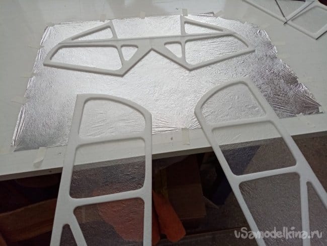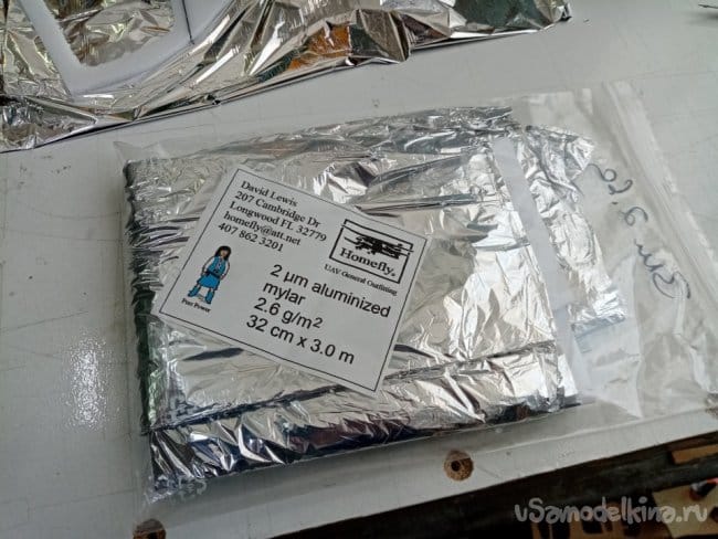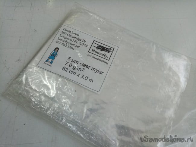 После полного высыхания всех элементов и снятия крепежа из малярного скотча, настало время обтянуть всю конструкцию супертонкой пленкой. Достаточно времени назад заказали такую версию.