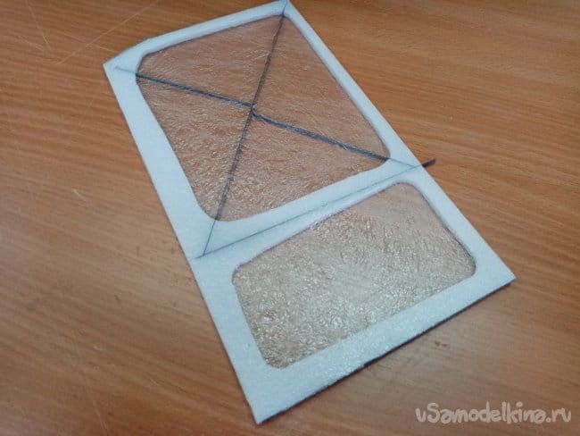 Изначально решено было использовать подложку под ламинат. Из достоинств, большой размер, позволяющий изготовить конструкцию без дополнительных клеевых швов. Поскольку он тоже имеет вес, в этом случае значение имеет каждый грамм или миллиграмм. Там грамм, тут грамм-набегает килограмм. Но этот номер у меня не прошел. Купленная мною пачка подложки к сожалению не подошла. Производитель применил "оптимизацию", при тех-же размерах, плотность и жесткость изделия совершенно изменилась. Материал стал мягкий и хлипкий как сопля.