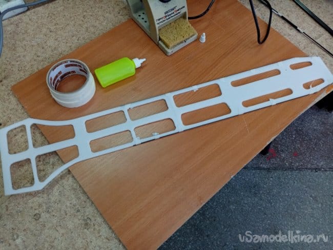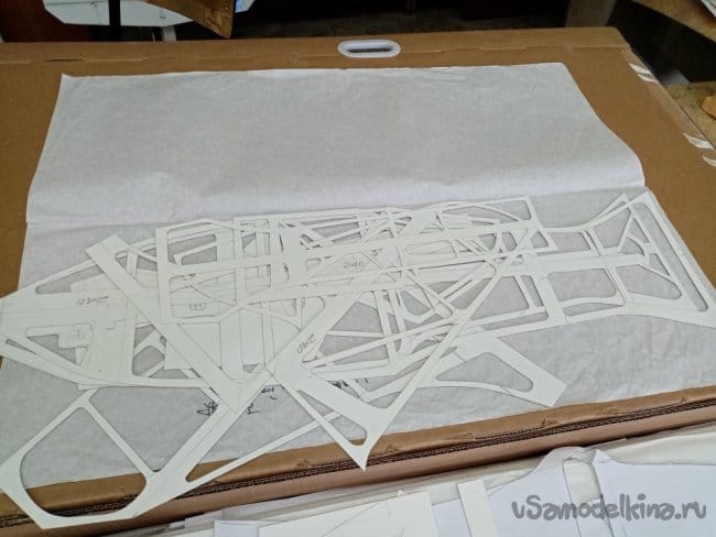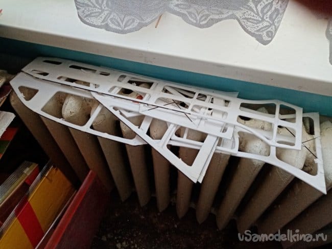 Готовы практически все элементы конструкции. Рейки усиления размером в 0.5х3 мм частично беру с разобранного "уставшего". Аккуратно очищаю от клея.
