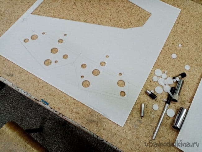 Вырезаю отверстия сопряжения различными по диаметру трубочками.