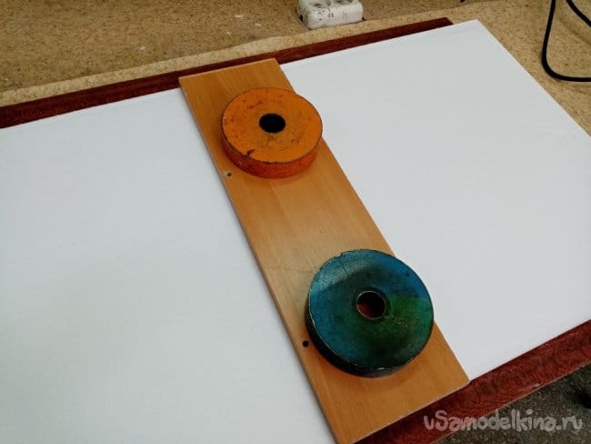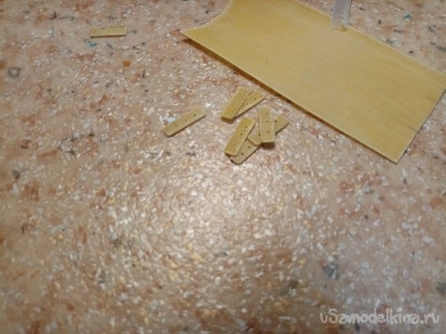 Пока все сохнет изготовляю крепежный элемент. В дело пойдет стеклопластик в 0.5 мм. Сверлю в каждой пластине три отверстия в 1мм.