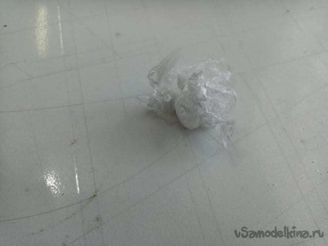 Предпочитаю "жеванный" вариант обтяжки. Поэтому отрезав нужного размера кусочек начинаю его мять. Ну....примерно минут пять, сминаю расправляю, сминаю.