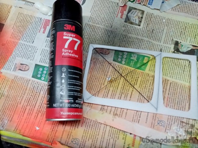 Наношу из баллона клей 3М 77, выжидаю минут пять и осторожно укладываю хвостик на расправленную пленку. Обрезаю по контуру, переворачиваю, осторожно прижимаю пленку по плоскости элементов.
