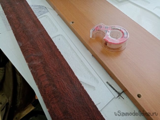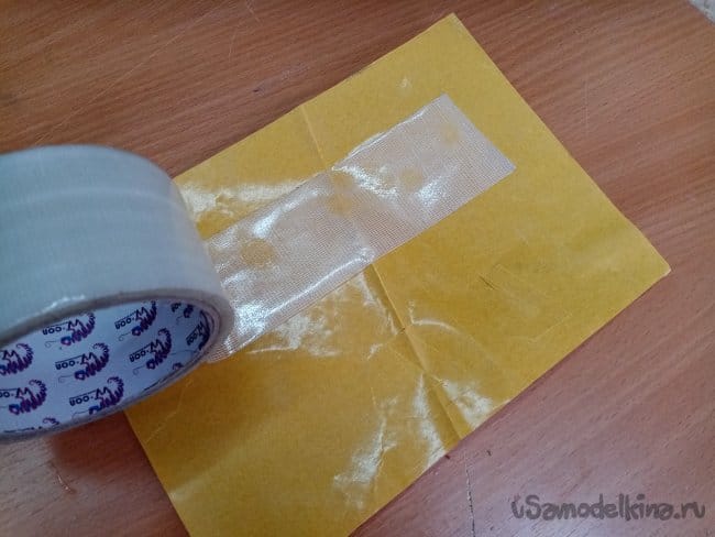 Осторожно расправляю, разглаживаю, фиксирую на плоскости малярным скотчем.