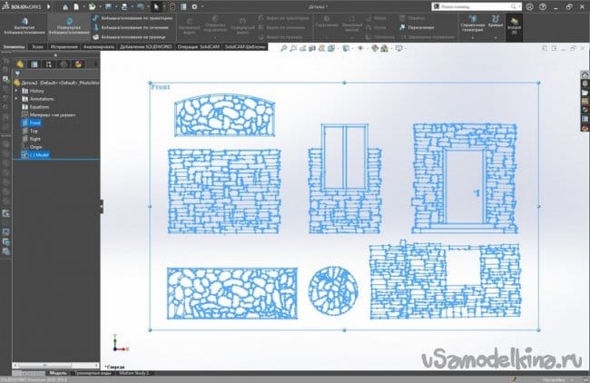 Что бы не резать каждую деталь отдельно, делаю сборку. Таким образом все детали будут вырезаны за одно крепление материала. Кстати в качестве материала использую фанеру березовую 4мм.