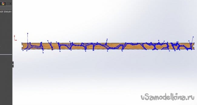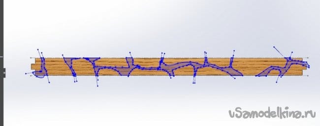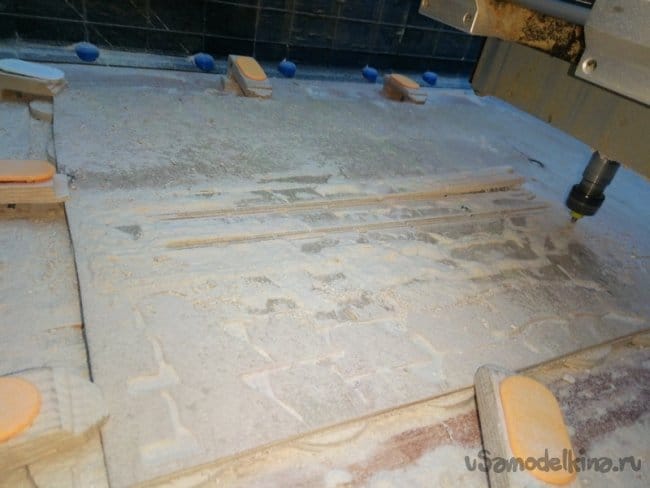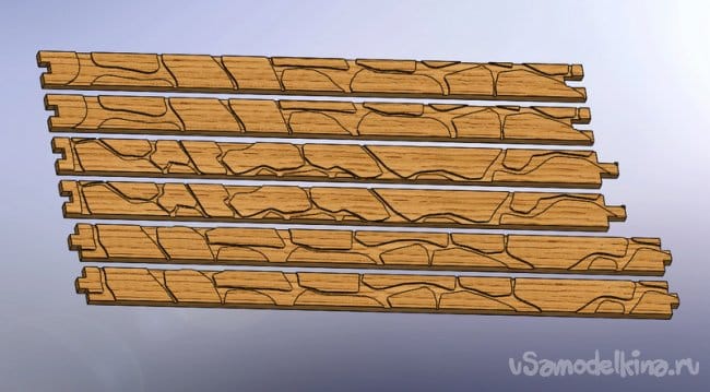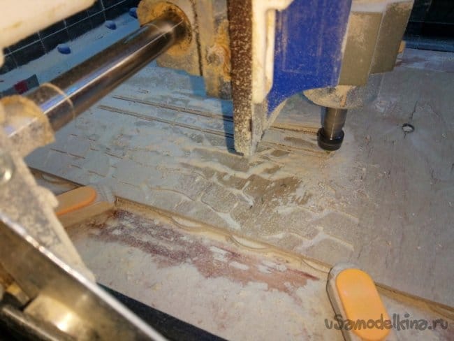 . Тем более после покрытия изделия значительно проявится картинка. То что глубже (пространство с раствором) будет темнее. Всё это увидите позже.Начинаю писать управляющую программу. Всё ничего, но есть одна проблемка. Рабочая зона на моем чпу 500х300 мм, а одна из деталей больше. Это решается легко, нужно просто эту деталь сделать составной. Для чего просто дулю ее пополам с местом стыка. После сборки будет почти не заметно о составной части.