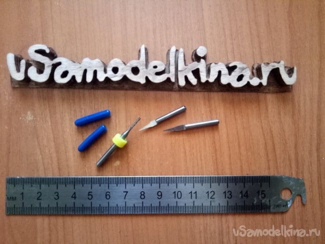 Резать буду вот такими фрезами. Для рисунка использую V-образную для гравировки со сломанным кончиком. Для вырезания по контуру концевую 1,5мм (кукурузу).