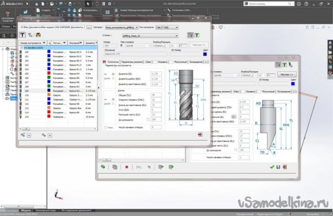Выбираю фрезы для обработки. В свое время создал базу используемого инструмента с заложенными габаритами и параметрами резания. Так же задаю другие параметры (уровни, технологию).