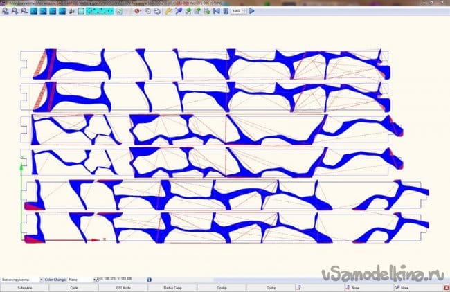 Вот процесс первой обработки. Задается рисунок каменной кладки. Глубину резки задал великоватую, да и фиг с ним, итог все покажет. Если что переделать пара часов, не работаю же сам