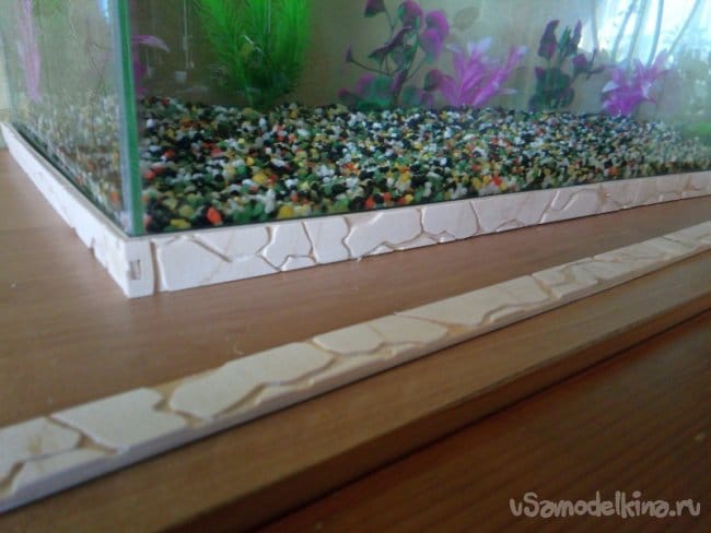 По предыдущему посту было видно что я установил аквариум на листовой (14 мм) пенопласт. Это первый размер, добавлю толщину стекла и получается 19 мм по высоте для наружного оформления низа аквариума. Размеры самого аквариума известны, поэтому первоначально рисую две простые планки, которые позже вырежу каждую в двух экземплярах.