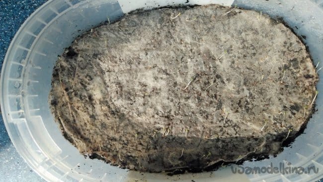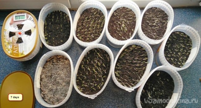 Второй метод, мне показался более практичным. Он заключается в непосредственной посадке семян, на заранее утрамбованный и увлажненный грунт. В этом эксперименте я наглядно показываю свой результат посева, на бумагу и непосредственно в грунт.
