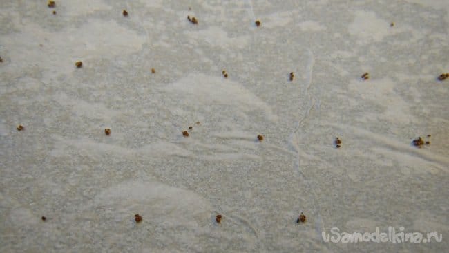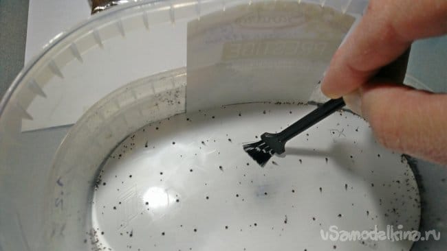 Чтобы семена зашли в отверстие, их нужно распределить с помощью пальцев, а также применив кисточку.