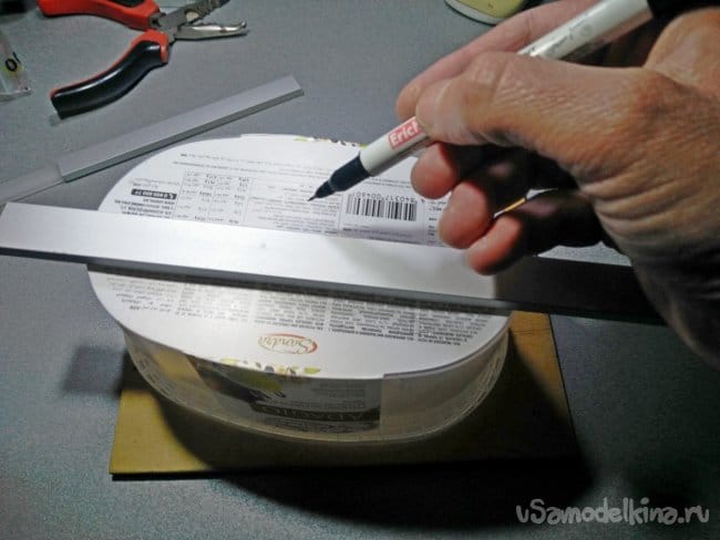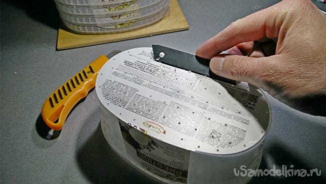 Далее, обрисовать контур контейнера и разрезать бумагу ножницами.