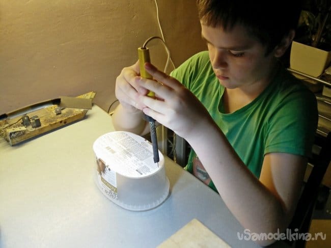 Закрепив надежно жало в паяльнике, можно продолжать работу. Моему ребёнку очень нравится помогать мне в изготовление самоделок, поэтому это "развлечение" я доверил ему.