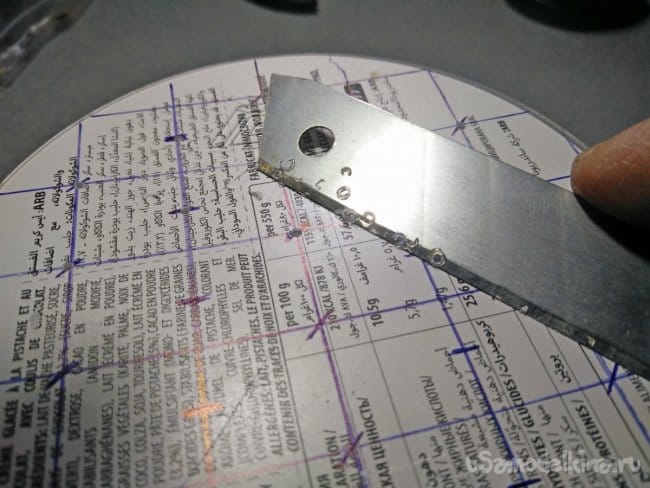 После операции с прокалыванием отверстий, остаётся срезать с помощью лезвия ножа, расплавленные заусенцы.
