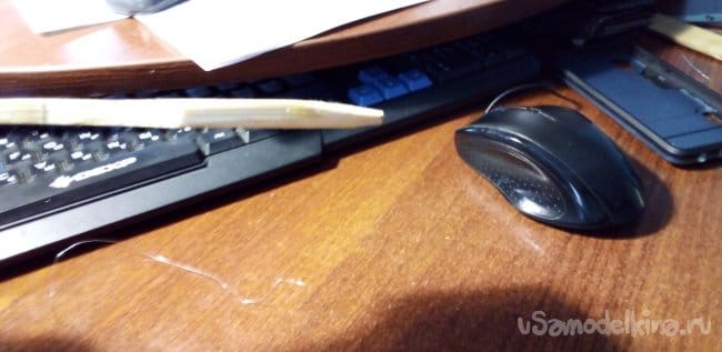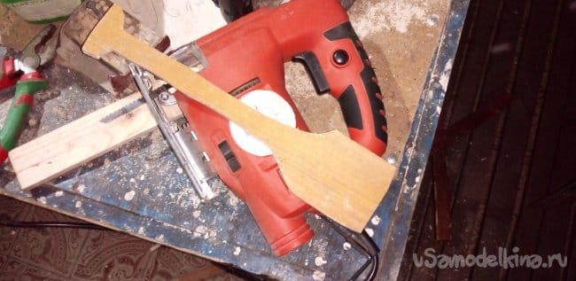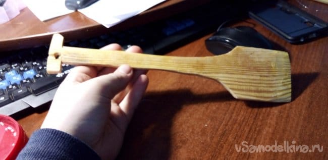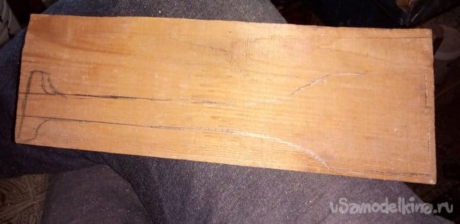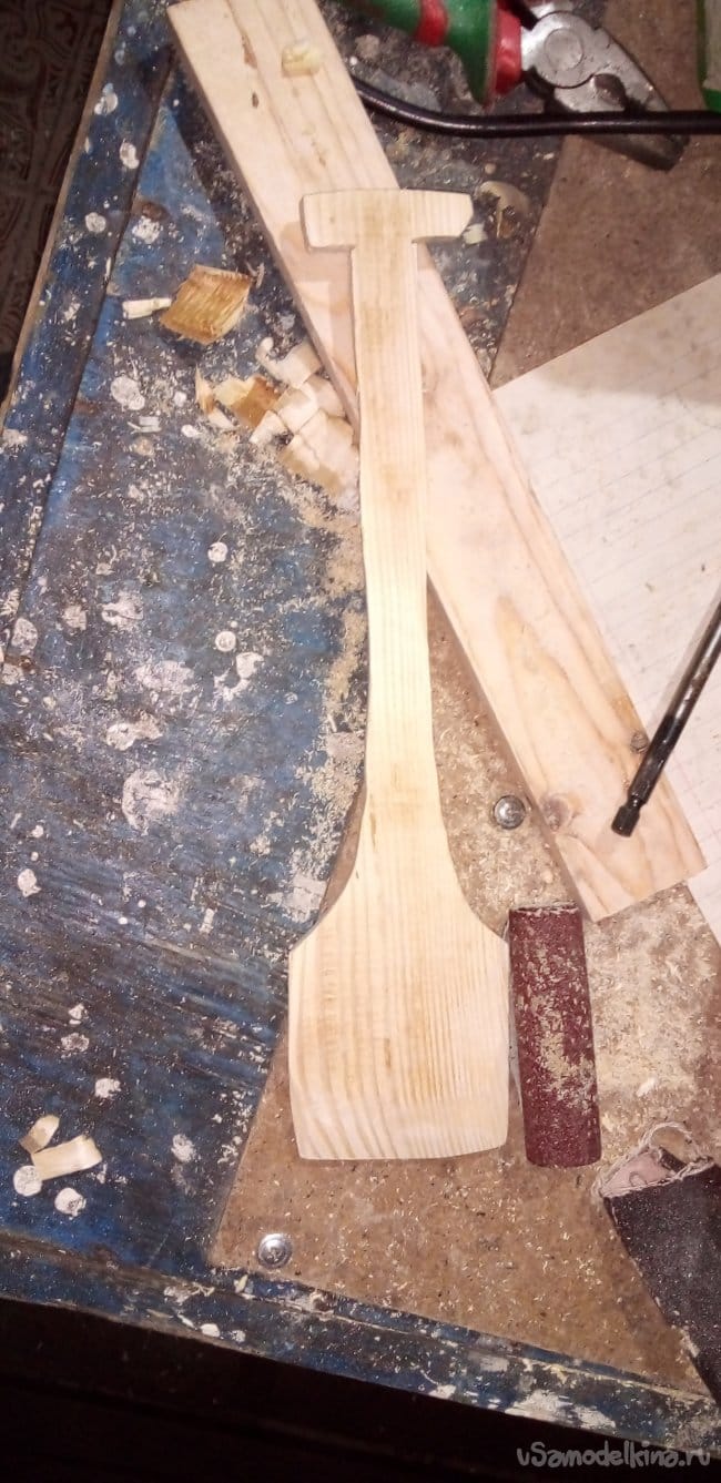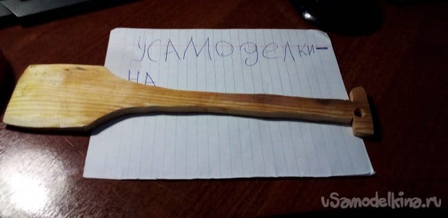 Чтоб ей харчи по сковородке гонять. Для того чтобы получить тонкую лопатку нужна тонкая деревяшка. Можно склеить щит из всяких ламелей, или из шпона, ну у меня всё легче, досточка из дровника, я от туда много что таскаю. Для создания нам надо помимо досточки.