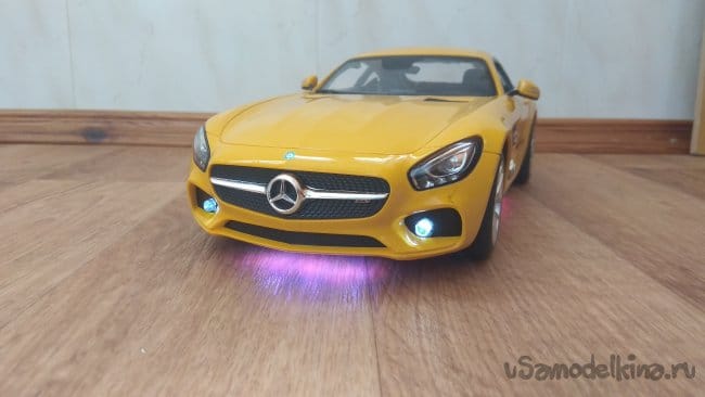Контроллер рабочий, приступаю к монтажу RGB ленты. Конструктивно лента состоит из сегментов по три светодиода. Примерил ленту. Спереди и сзади машинки будет стоять один сегмент, между колесами по два сегмента.