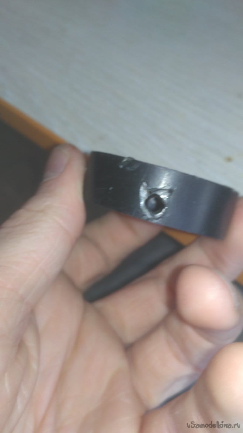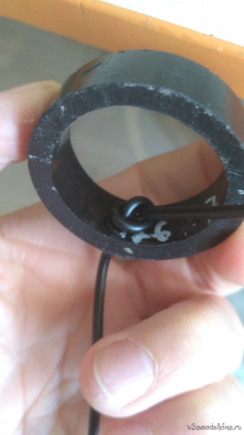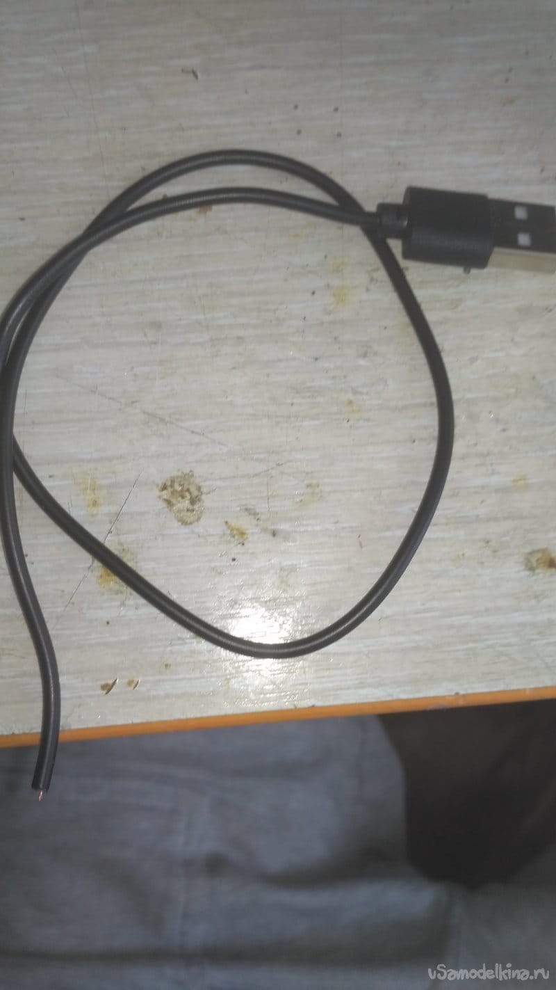 Вполне возможно, вы подумали, что следующим шагом будет припайка провода для подключения к USB-порту компьютера. Но это не так. Сейчас мы займёмся корпусом. Для начала берём пластиковый каркас от изоленты и делаем в нём отверстие под толщину провода USB с очень небольшим запасом. Это можно выполнить разными способами: просверлить или проплавить, решать вам. Я проплавил, поэтому пришлось зачистить подтёки пластика канцелярским ножом.