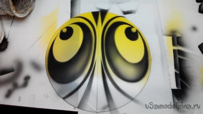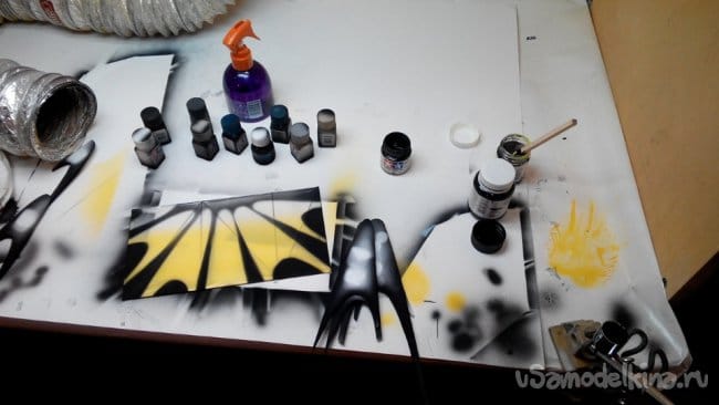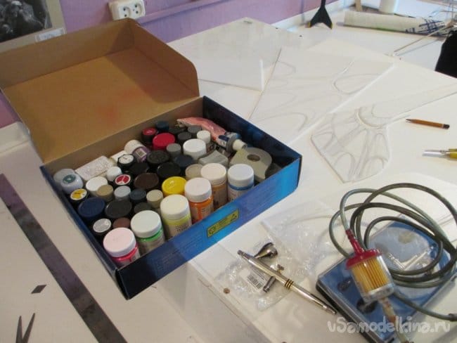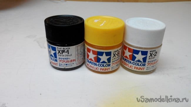 Окрашен акриловой эмалью фирмы тамия для стендовых моделей. С применением пенопластовых трафаретов.
