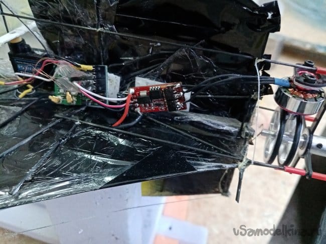 В качестве силовой установки использовался легкий стандартный движок в 16 грамм с регулятором в 6 грамм.