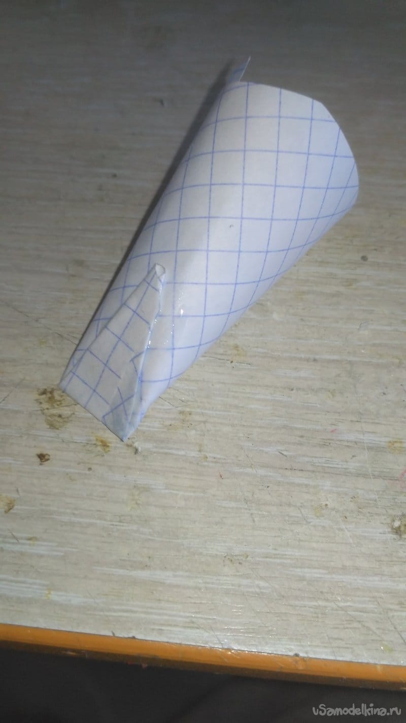 Данное приспособление изготавливается из небольшого кусочка бумаги. Из него сворачиваем конус (вроде такая форма ещё называется «фунтик») и хорошо склеиваем.
