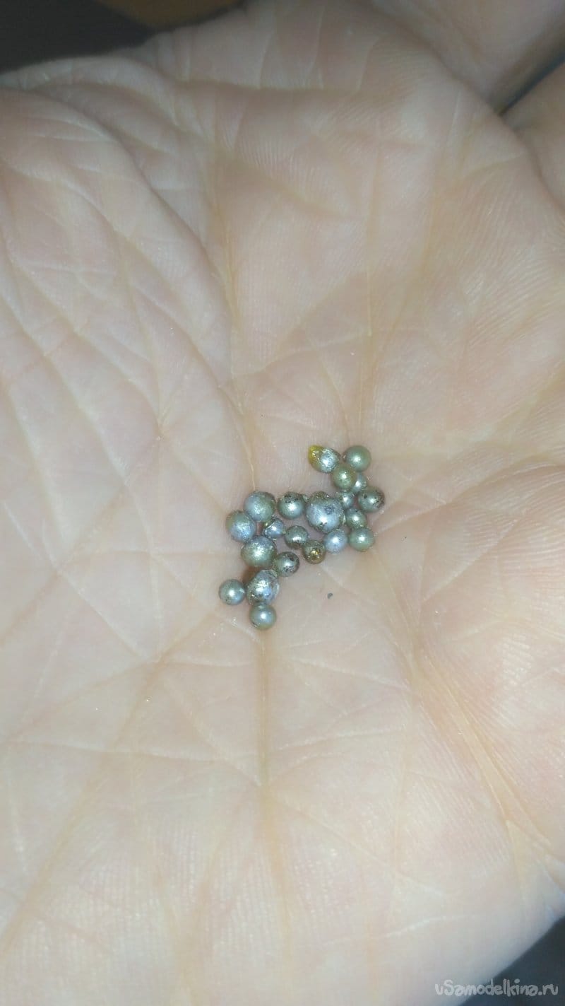 Эта часть статьи будет интересна не только пользователям рогаток, но и владельцам ружей, которым важна форма дроби. Я заметил, что припой, находясь в контакте со смолой, застывает в форме, которая очень похожа на каплю.