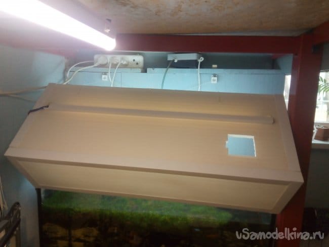 Все началось с того, что когда-то я сделал себе крышку для 100-литрового аквариума. И, хорошенько не подумав, прорезал отверстие для кормёжки рыбы где пришлось. Потом у меня появились плавающие водоросли, рыб нужно было кормить в определенном месте, где этих водорослей не было. И естественно, прорезанное ранее отверстие не попадало в это место. Прорезать еще одно окошко было бы глупо, так как крышка перестала бы выполнять основную функцию, а делать новую не хотелось, ведь все могло снова поменяться и пришлось бы еще раз переделывать. Выход только один - каждый раз откидывать крышку, но держать одной рукой довольно массивную крышку, а другой кормить рыб не удобною. Значит нужно придумать как быстро и удобно фиксировать крышку в откинутом положении. Этим мы и займемся в этой статье.