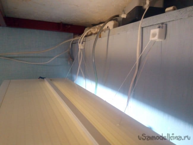 Блоки я закрепил на высоте 35 см от края аквариума, чтобы металлические утяжелители не били по аквариуму когда опускались . Очень важно закрепить блоки на одной высоте, так как от этого зависит правильность работы всей системы. Высоту от края аквариума, расстояние между блоками и длину веревки нужно рассчитывать отдельно для своего случая. Я сделал с первого раза на глазок, прикинув все в уме. Ничего сложного в этом нет.