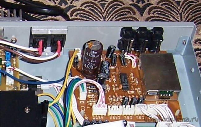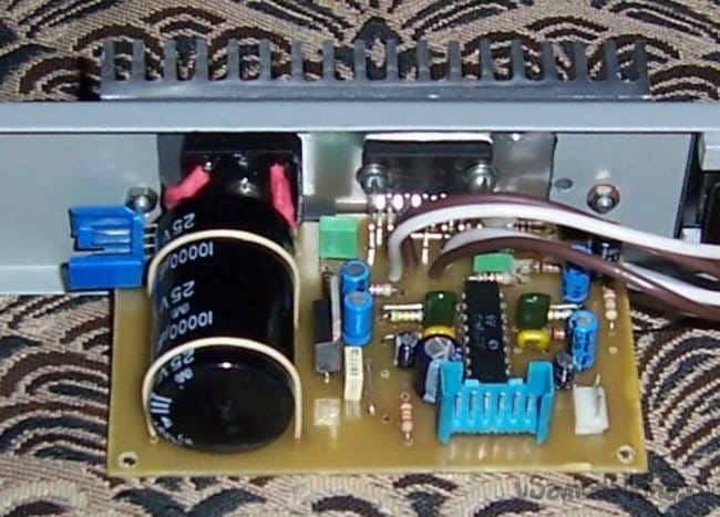 Фильтрует питание усилителя конденсатор 10000мкФ 25В. Для питания темброблока необходимо 12В, применил стабилизатор LM7812.