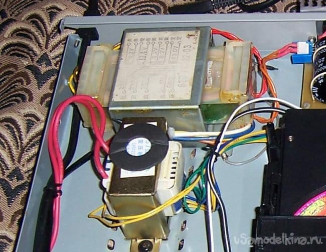 Свободного места в таких плеерах всегда много. За маленьким трансформатором плеера впритык вместился большой трансформатор для питания новой платы.
