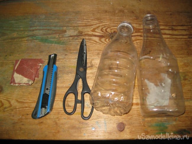 Поскольку технология изготовления всех таких совков абсолютно одинакова, то я покажу это на примере изготовления совка из молочной бутылки.