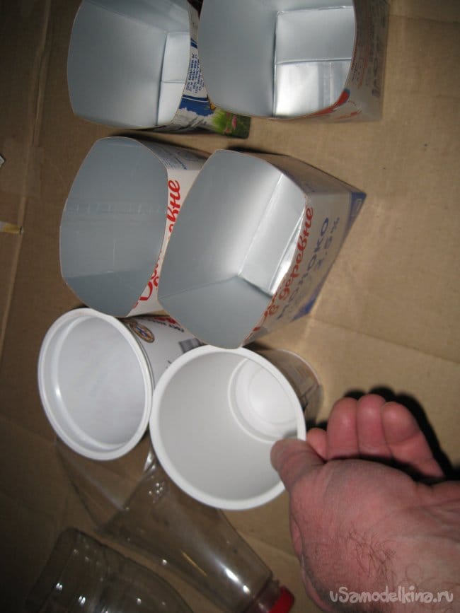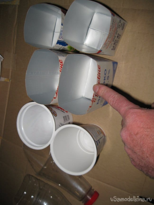 Во-первых, это контейнеры, сделанные из картонных молочных пакетов прямоугольного и квадратного сечения.