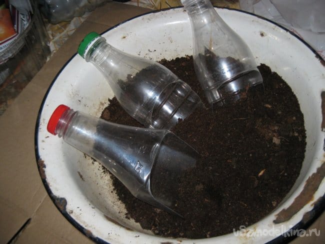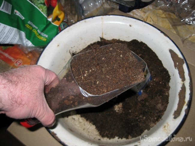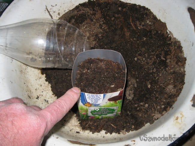 Ну, а теперь попробуем насыпать этими совками грунт в посадочные контейнеры.